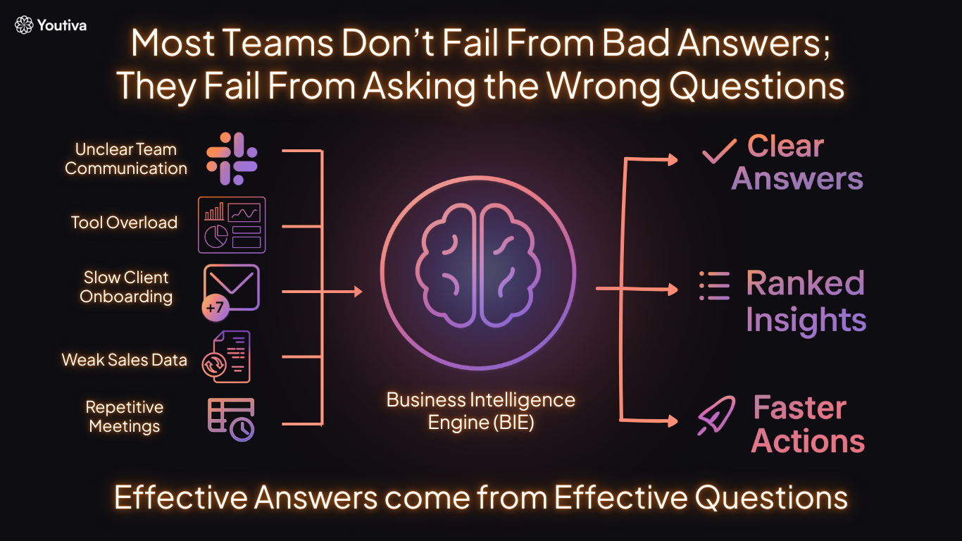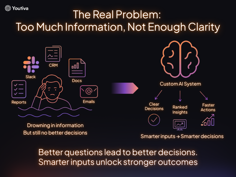If you’re a business owner, you probably don’t feel like you’re drowning in answers; you feel like you’re drowning in information. Slack threads, CRM dashboards, client emails, Google Docs, reports… all telling you something.