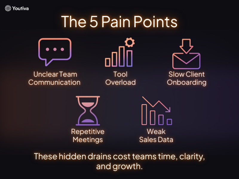 Why it hurts: Decisions get delayed. Clients feel the chaos. You feel the stress.