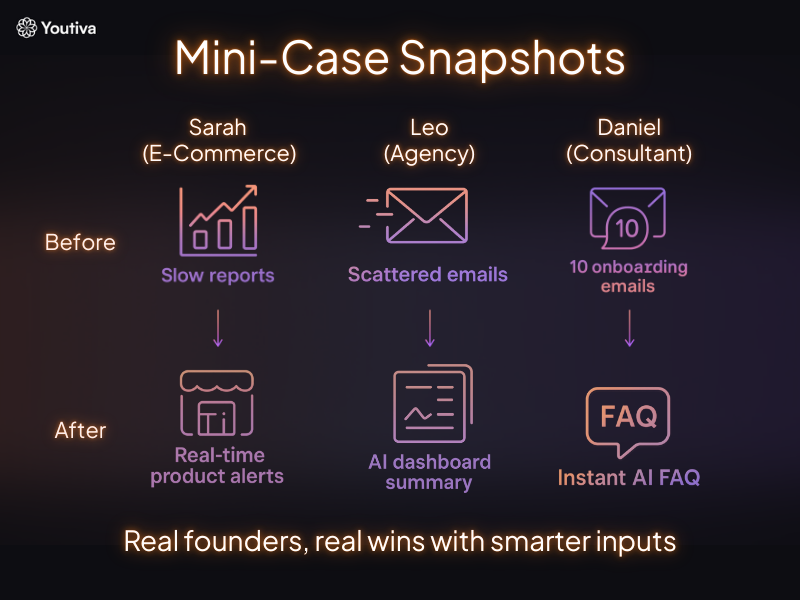 - After: AI assistant handled FAQs instantly, cutting onboarding from 2 weeks to 3 days.